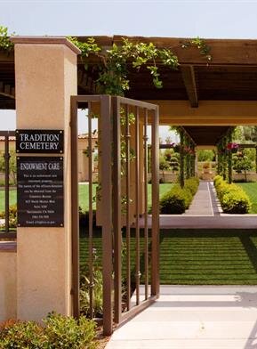 Tradition Cemetery está específicamente diseñado para el entierro de restos cremados. Visite Tradition Cemetery, usted será recibido por un ambiente pacifico, invitador de bellos y elegantes paisajes, pabellones y pasarelas cubiertas con guías florales. Nuestro personal está disponible para atenderle.